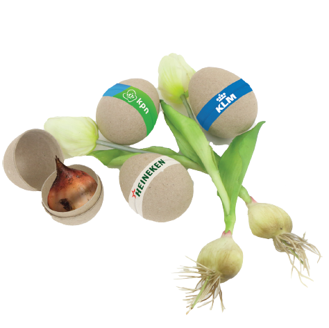 Nachhaltiges Zellstoff-Ei gefüllt mit einer Blumenzwiebel Ihrer Wahl und Ihrem eigenen FC-Label mehr