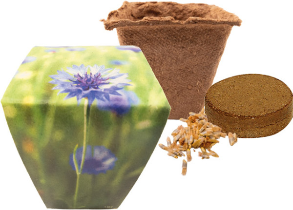 Naturtöpfchen Blue, Kornblume, inkl. Digitaldruck 1-4/0 c