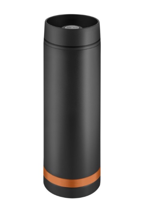 Metmaxx® Thermobecher "Crema" 360° schwarz/Ring orange