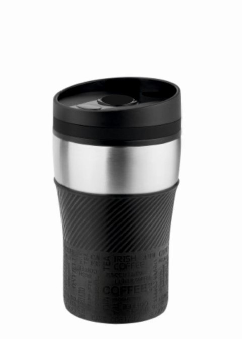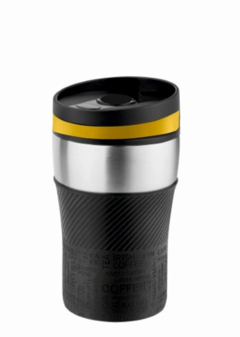 Metmaxx® Thermobecher "CremaOfficina" silber/Manschette schwarz/Ring gelb