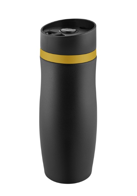 Metmaxx® Thermobecher "CremaExtensaNero" schwarz/Ring gelb