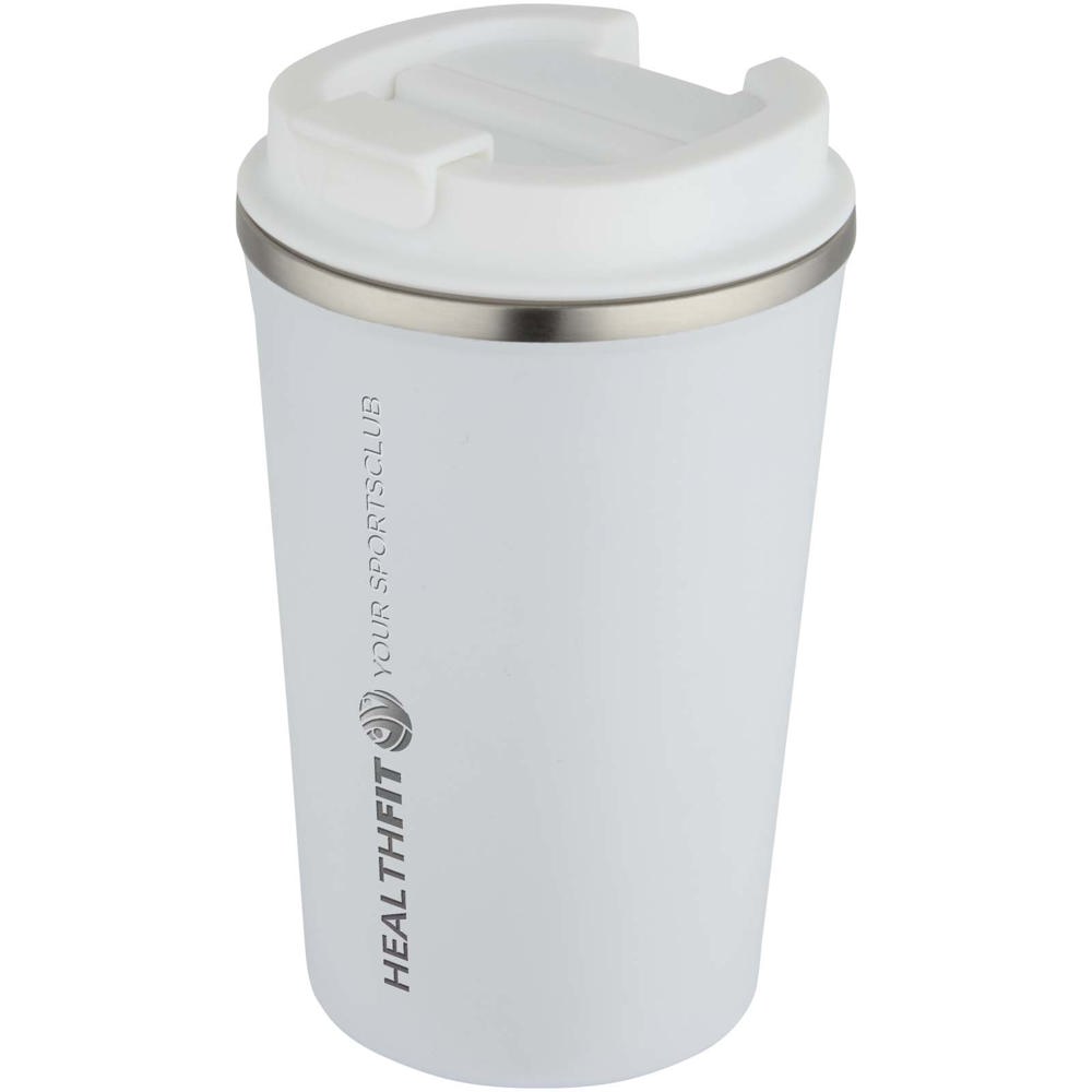 Dieser doppelwandige, vakuumisolierte Kaffeebecher aus Edelstahl wurde für den Einsatz unterwegs entwickelt und hält Getränke lange auf der eingefüllten Temperatur. Der Drehverschluss lässt sich leicht öffnen und schließen, sodass ein bequemes Trinken möglich ist. Die matte Beschichtung sorgt für ein elegantes Finish. Auslaufsicher. Fassungsvermögen: 350 ml.