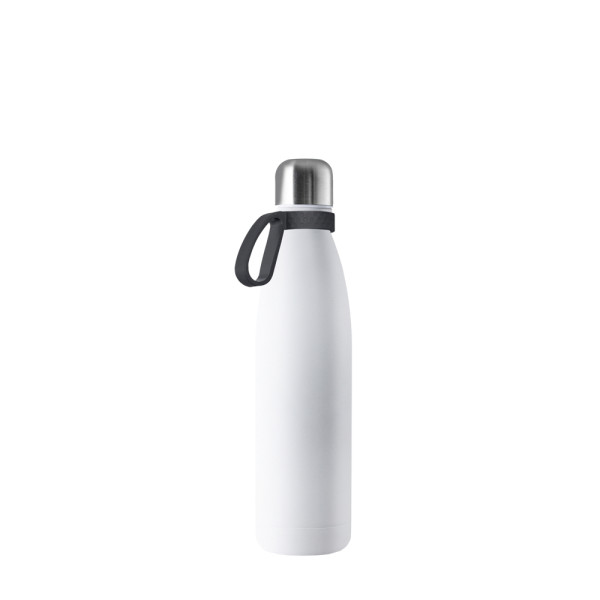 Für Heiß- oder Kaltgetränke, unsere doppelwandige Edelstahlflasche überzeugt durch trendiges und funktionales Design. Durch die Doppelwandigkeit mit Vakuum bleibt das Getränk lange kalt bzw. heiß. Die Trinkflasche kann mit edler mattschwarzer, weißer Pulverbeschichtung oder natürlich silberglänzend bestellt werden. 500 ml Fassungsvermögen stehen zur Verfügung. Setzen Sie ihr Logo stilvoll in Szene auf der Trend Trinkflasche schlechthin.