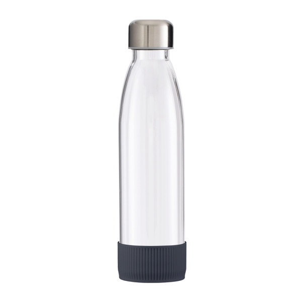 RETUMBLER-myToulon Glass ist eine Weiterentwicklung der beliebten Trinkflasche RETUMBLER-myToulon. Die 650-ml-Trinkflasche ist aus Borosilikatglas, recyceltem Edelstahl und Polypropylen-Kunststoff gefertigt. Eine Besonderheit des hochwertigen, hitzebeständigen Borosilikatglases ist, dass es handgefertigt und mundgeblasen wurde. Die Flasche ist in Klarglas oder mit einer matten, transparenten Lackierung (ähnlich gefrostetem Glas) verfügbar. Die auslaufgeschützte Trinkflasche ist sowohl für heiße als auch für kalte Getränke geeignet. Die konfigurierbare Trinkflasche myToulon Glass kann mit einem Ring und einer Manschette aus Silikon kombiniert werden. Dabei stehen 17 verschiedene Silikonfarben zur Auswahl. Unsere Pflegetipps: Die klare Flasche kann bedenkenlos in der Spülmaschine gereinigt werden; die lackierten Modelle sollten von Hand gereinigt werden. RETUMBLER-myToulon Glass bietet eine optimale Bühne für Logos und Slogans. Dafür stellen wir Lasergravur und Tampondruck auf dem Flaschenkorpus zur Verfügung.