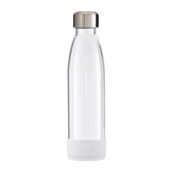 RETUMBLER-myToulon Glass ist eine Weiterentwicklung der beliebten Trinkflasche RETUMBLER-myToulon. Die 650-ml-Trinkflasche ist aus Borosilikatglas, recyceltem Edelstahl und Polypropylen-Kunststoff gefertigt. Eine Besonderheit des hochwertigen, hitzebeständigen Borosilikatglases ist, dass es handgefertigt und mundgeblasen wurde. Die Flasche ist in Klarglas oder mit einer matten, transparenten Lackierung (ähnlich gefrostetem Glas) verfügbar. Die auslaufgeschützte Trinkflasche ist sowohl für heiße als auch für kalte Getränke geeignet. Die konfigurierbare Trinkflasche myToulon Glass kann mit einem Ring und einer Manschette aus Silikon kombiniert werden. Dabei stehen 17 verschiedene Silikonfarben zur Auswahl. Unsere Pflegetipps: Die klare Flasche kann bedenkenlos in der Spülmaschine gereinigt werden; die lackierten Modelle sollten von Hand gereinigt werden. RETUMBLER-myToulon Glass bietet eine optimale Bühne für Logos und Slogans. Dafür stellen wir Lasergravur und Tampondruck auf dem Flaschenkorpus zur Verfügung.