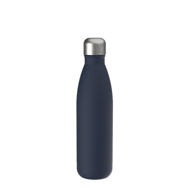 Für Heiß- oder Kaltgetränke, unsere doppelwandige Edelstahlflasche überzeugt durch trendiges und funktionales Design. Durch die Doppelwandigkeit mit Vakuum bleiben ihre Getränke lange kalt bzw. heiß. Die Trinkflasche kann mit navy-blauem, edlen mattschwarzem, weißem Powder Coating oder natürlich silberglänzend bestellt werden. 500 ml Fassungsvermögen stehen zur Verfügung. Setzen Sie ihr Logo stilvoll in Szene auf der Trend Trinkflasche schlechthin.