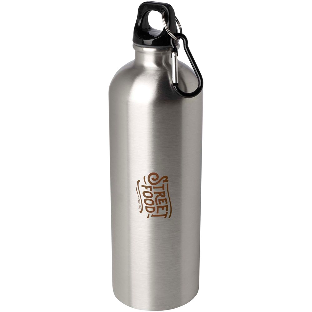 Mit dieser robusten und dennoch leichten 750 ml Trinkflasche aus RCS-zertifiziertem, recyceltem Edelstahl sind Sie immer gut mit Flüssigkeit versorgt. Sie ist der perfekte Begleiter beim Sport, auf Tagesausflügen oder im Büro. Die einwandige Oregon Flasche hat einen Drehverschluss und bietet viel Platz für ein Logo Ihrer Wahl. Der mitgelieferte Karabinerhaken (nicht zum Klettern geeignet) kann sicher an einer Tasche befestigt werden, damit die Flasche nicht verloren geht.