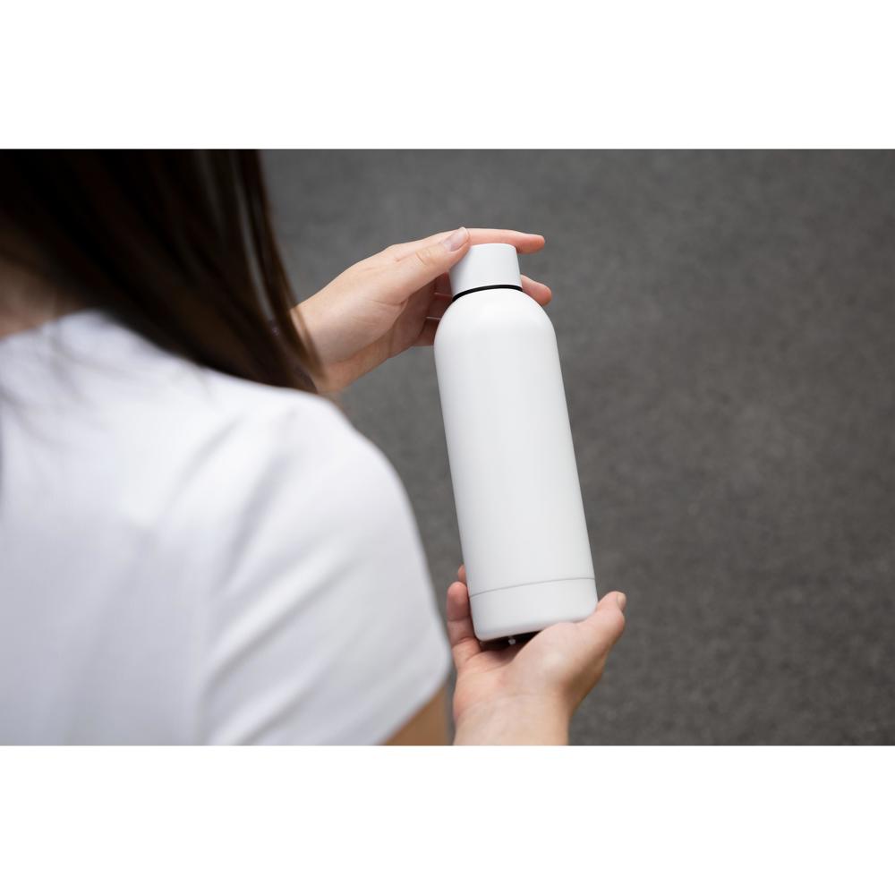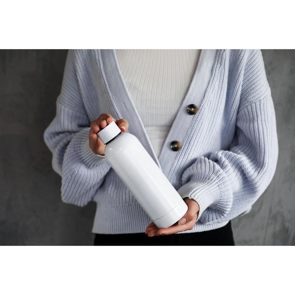 Zu Hause, beim Sport oder auf Reisen – die schicke doppelwandige Isolierflasche aus geschmacksneutralem Edelstahl ist bestens für kalte und warme Getränke geeignet und hält bis zu 8h warm. Der handliche Schraubdeckel mit Silikondichtung sorgt dafür, dass selbst kohlensäurehaltige Drinks nicht auslaufen können. In den Farben matt-schwarz und matt-weiß erhältlich. Füllmenge: 0,5 Liter.