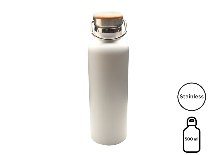 Doppelwandige Flasche 'Arima', weiß, Bambusdeckel, 500ml