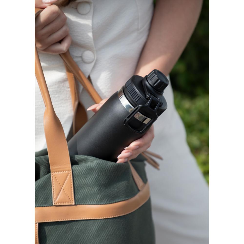 Die Vakuumflasche "Stockholm" hält Getränke bis zu 8 Stunden warm und bis zu 18 Stunden kalt. Sie eignet sich auch für kohlensäurehaltige Getränke und ist dank des praktischen Henkels leicht zu tragen. Mit der Schraubverschlussöffnung ist sie ideal für unterwegs – robust, vielseitig und perfekt für jeden Einsatz! Füllvolumen: ca. 550 ml
