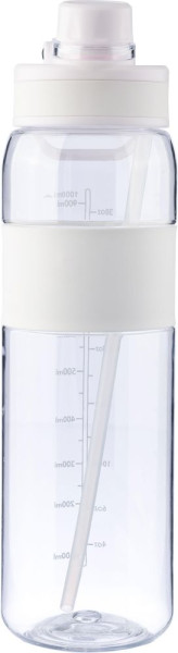 Die Tritan-Trinkflasche (900 ml) bietet zwei Trinkmöglichkeiten: Sie verfügt über einen Drehverschluss und einen faltbaren Strohhalm mit Innenschlauch. Sie verfügt über einen Silikongriff, einen PP-Tragegriff und eine aufgedruckte Kapazitätsanzeige. Inkl. Schraubdeckel. Die Flasche ist in einer Eierkiste verpackt.