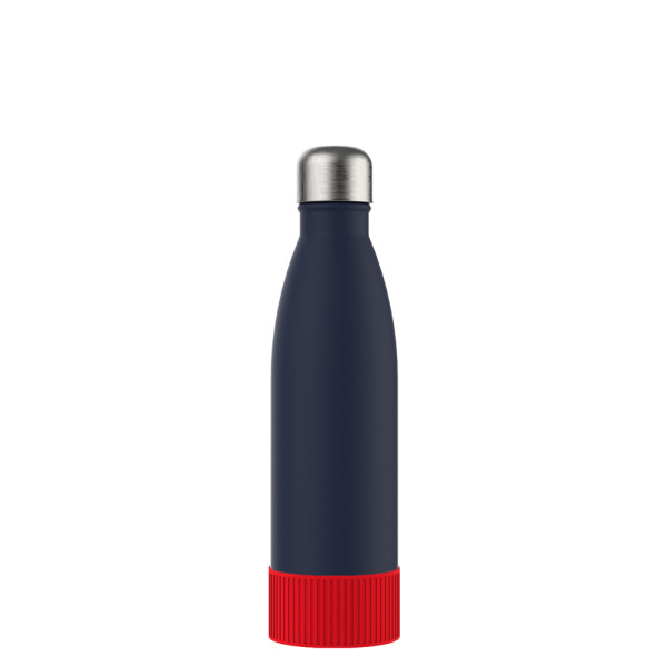 Für Heiß- oder Kaltgetränke, unsere doppelwandige Edelstahlflasche überzeugt durch trendiges und funktionales Design. Durch die Doppelwandigkeit mit Vakuum bleiben ihre Getränke lange kalt bzw. heiß. Die Trinkflasche kann mit navy-blauem, edlen mattschwarzem, weißem Powder Coating oder natürlich silberglänzend bestellt werden. 500 ml Fassungsvermögen stehen zur Verfügung. Setzen Sie ihr Logo stilvoll in Szene auf der Trend Trinkflasche schlechthin.