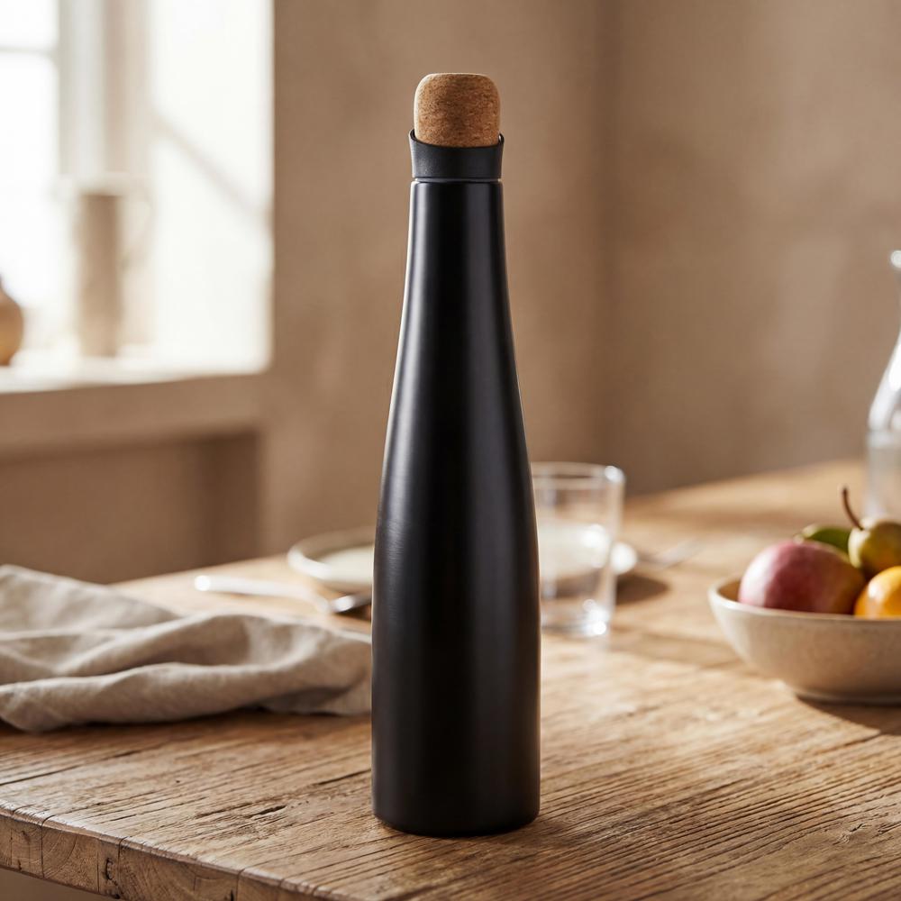 Die Karafe „Velda“ kombiniert edles Design mit Funktionalität: Doppelwandiger Edelstahl hält Getränke länger kühl, während der Korkdeckel für einen natürlichen Akzent sorgt. Mit 750 ml Fassungsvermögen, langlebig, geschmacksneutral und leicht zu reinigen – die stilvolle Isolierkanne für Alltag und Freizeit.