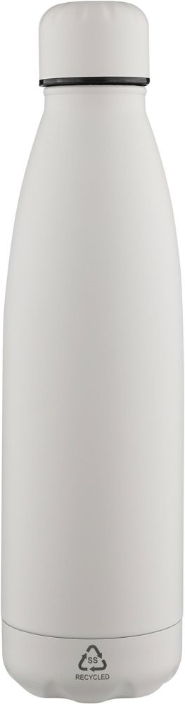 Recycelte Trinkflasche aus Edelstahl mit 500 ml Fassungsvermögen und doppelwandiger Isolierung, um Getränke bis zu 12 Stunden lang heiß oder kalt zu halten. Der Innenraum aus Edelstahl 304 gewährleistet hervorragende Haltbarkeit, Rostbeständigkeit und sicheren Kontakt mit Lebensmitteln und Getränken. Mit glatter, matter Oberfläche. Der Schraubdeckel und der Boden sind farblich aufeinander abgestimmt und sorgen für ein klares, einheitliches Erscheinungsbild. Mit eingraviertem Recycling-Logo auf der Vorderseite des Flaschenkörpers. Einzeln verpackt in einem braunen Karton.