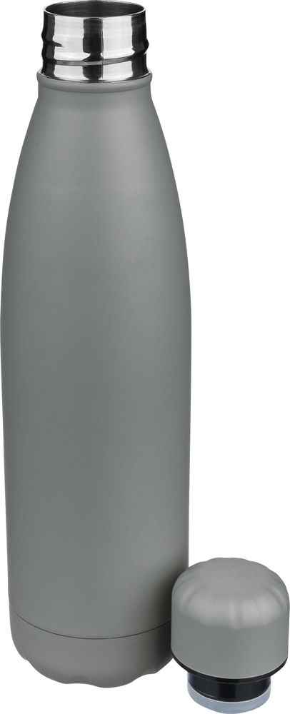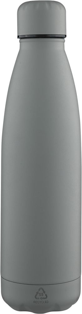 Recycelte Trinkflasche aus Edelstahl mit 500 ml Fassungsvermögen und doppelwandiger Isolierung, um Getränke bis zu 12 Stunden lang heiß oder kalt zu halten. Der Innenraum aus Edelstahl 304 gewährleistet hervorragende Haltbarkeit, Rostbeständigkeit und sicheren Kontakt mit Lebensmitteln und Getränken. Mit glatter, matter Oberfläche. Der Schraubdeckel und der Boden sind farblich aufeinander abgestimmt und sorgen für ein klares, einheitliches Erscheinungsbild. Mit eingraviertem Recycling-Logo auf der Vorderseite des Flaschenkörpers. Einzeln verpackt in einem braunen Karton.