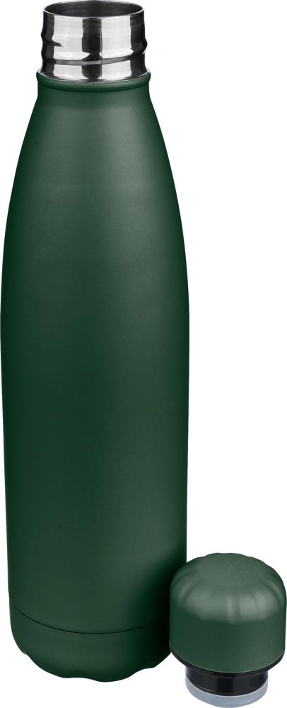 Recycelte Trinkflasche aus Edelstahl mit 500 ml Fassungsvermögen und doppelwandiger Isolierung, um Getränke bis zu 12 Stunden lang heiß oder kalt zu halten. Der Innenraum aus Edelstahl 304 gewährleistet hervorragende Haltbarkeit, Rostbeständigkeit und sicheren Kontakt mit Lebensmitteln und Getränken. Mit glatter, matter Oberfläche. Der Schraubdeckel und der Boden sind farblich aufeinander abgestimmt und sorgen für ein klares, einheitliches Erscheinungsbild. Mit eingraviertem Recycling-Logo auf der Vorderseite des Flaschenkörpers. Einzeln verpackt in einem braunen Karton.