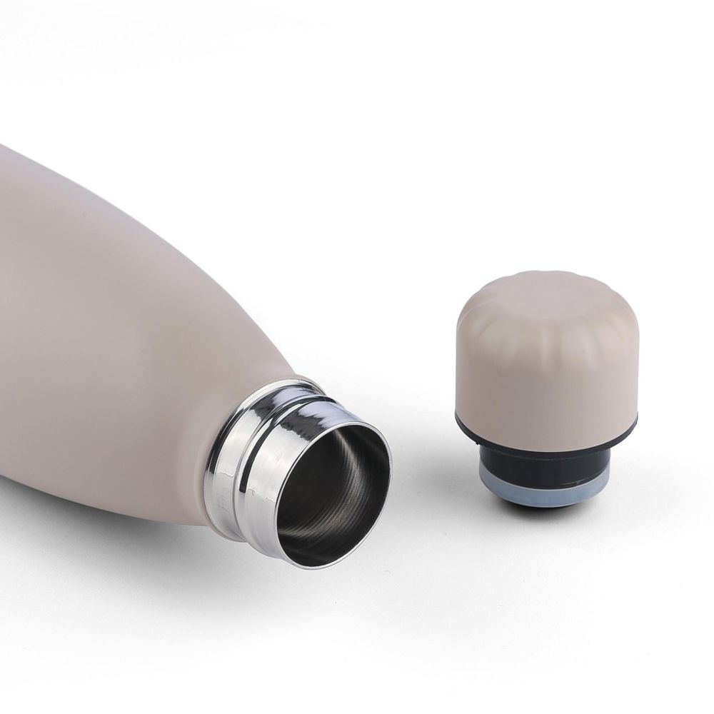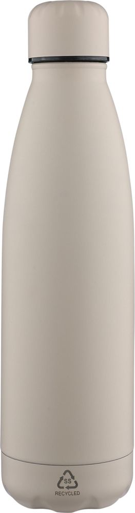 Recycelte Trinkflasche aus Edelstahl mit 500 ml Fassungsvermögen und doppelwandiger Isolierung, um Getränke bis zu 12 Stunden lang heiß oder kalt zu halten. Der Innenraum aus Edelstahl 304 gewährleistet hervorragende Haltbarkeit, Rostbeständigkeit und sicheren Kontakt mit Lebensmitteln und Getränken. Mit glatter, matter Oberfläche. Der Schraubdeckel und der Boden sind farblich aufeinander abgestimmt und sorgen für ein klares, einheitliches Erscheinungsbild. Mit eingraviertem Recycling-Logo auf der Vorderseite des Flaschenkörpers. Einzeln verpackt in einem braunen Karton.