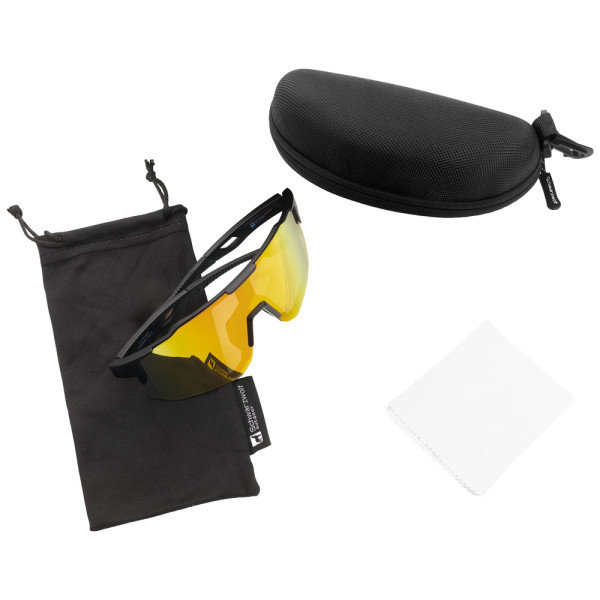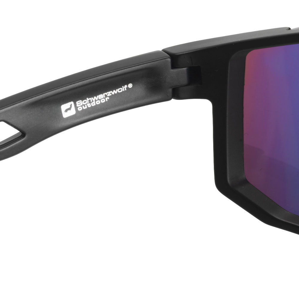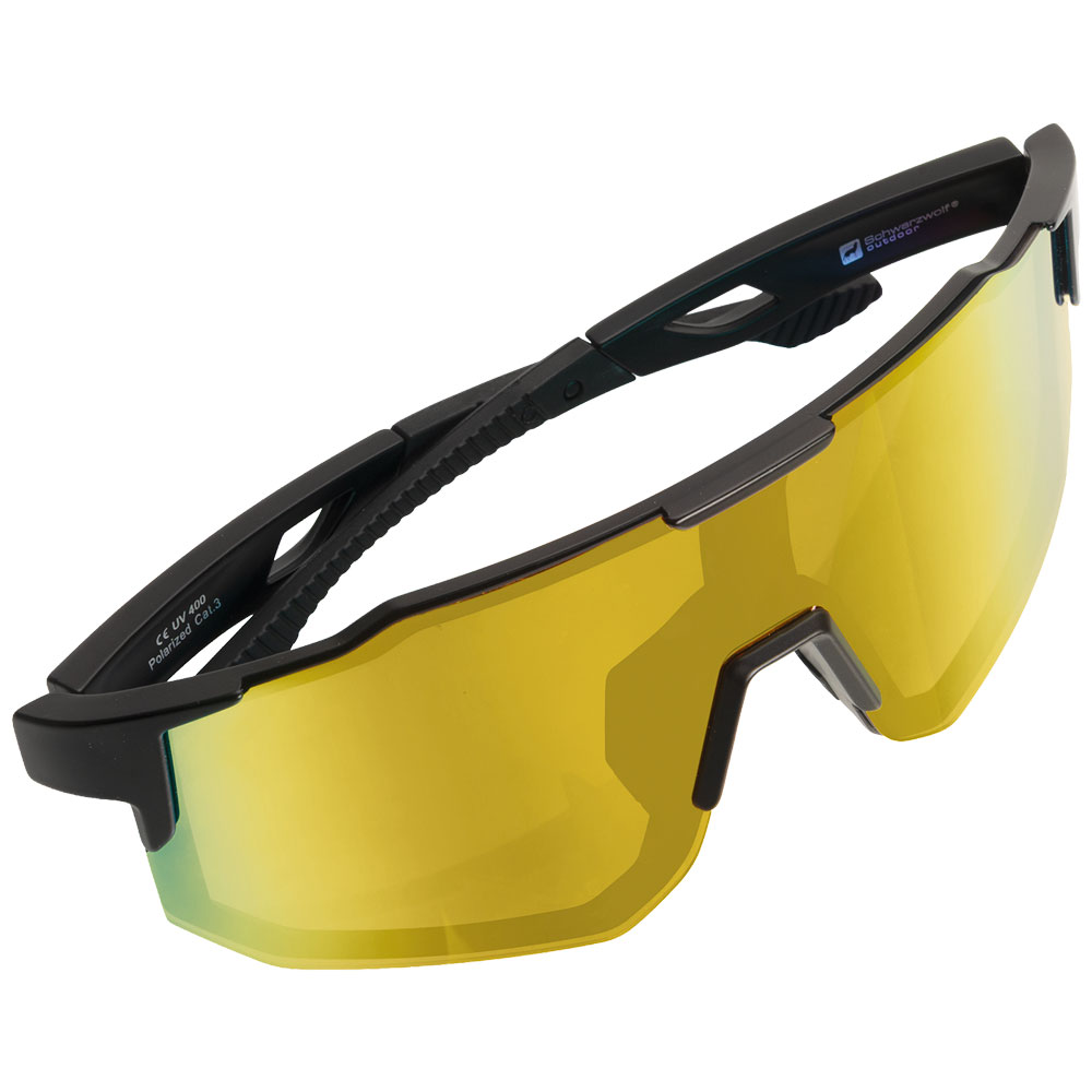 Polarisierte Schwarzwolf outdoor Sportsonnenbrille mit farbigen Gläsern. Das Brillengestell ist schwarz und bietet UV-400-Schutz. Diese Sportbrille mit polarisierten Gläsern reduziert störende Blendungen und verbessert die Detailwahrnehmung im Freien. Das Ergebnis: weniger Augenbelastung und natürlichere Farbwahrnehmung selbst bei starker Sonneneinstrahlung. Ideal zum Laufen, Radfahren, für Wassersportarten und den täglichen Gebrauch.