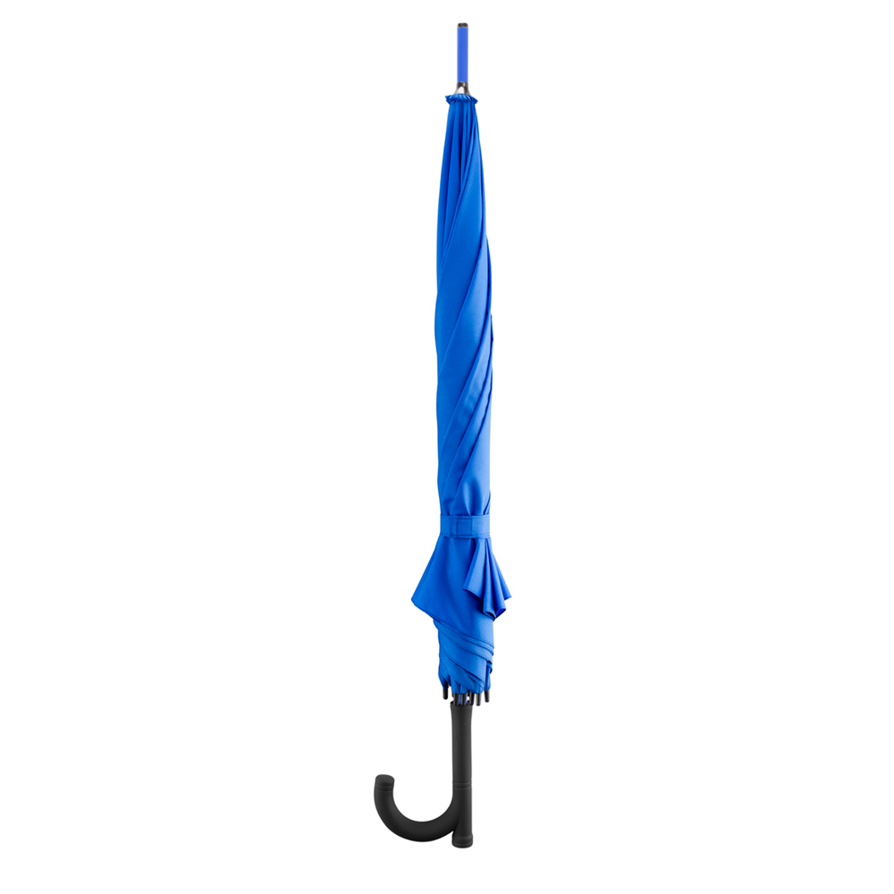 Der Regenschirm hat eine Bespannung aus 190T Pongee und einen Durchmesser von ca. 102 cm. Er verfügt über eine Automatikfunktion und besteht aus 8 Segmenten. Der Schirm ist mit einer Windproof-Funktion ausgestattet und besitzt einen gummierten J-Rundgriff in Schwarz.