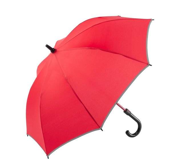 Der Schirm bietet eine Bespannung aus 190T Pongee mit reflektierender Bordüre für bessere Sichtbarkeit. Mit einem Durchmesser von ca. 104 cm schützt er zuverlässig vor Wind und Regen. Im geschlossenen Zustand misst der Schirm ca. 83 cm in der Länge. Die Automatikfunktion ermöglicht ein schnelles Öffnen. Er ist außerdem mit einer Windproof-Funktion ausgestattet, die ihn auch bei starkem Wind stabil hält. Der Kunststoffrundgriff in schwarz glänzend sorgt für einen komfortablen Halt.