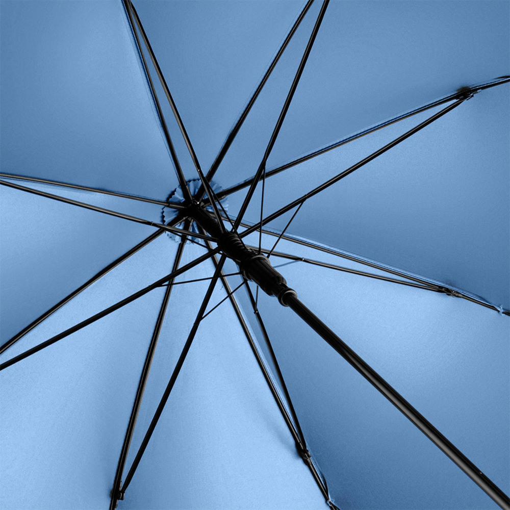 Komfortable Automatik-Funktion zum schnellen Öffnen, Windproof-System für höhere Gestell-Flexibilität und bessere Windsicherheit, flexible Fiberglasschienen, harmonisch kombinierter zweifarbiger Bezug mit aufeinander abgestimmten Innen- und Außenfarben, Saum, Rosette und Schließband farblich auf Bezug-Innenfarbe angepasst, von innen beschichteter Bezug, gerader Soft-Touch-Griff mit doppelter Werbeanbringungsmöglichkeit, höherer Korrosionsschutz durch schwarze Galvanisierung des Stahlstocks. Auch als Taschenschirm (Art. 5529) erhältlich.