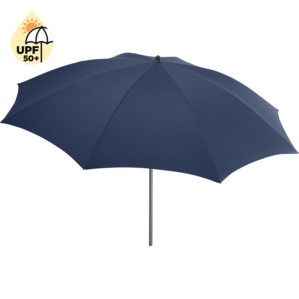 Moderner Sonnenschirm mit Gestell in Titan-Finish und Knickvorrichtung Einfache Handhabung durch Sicherheitsschieber, sehr stabile Fiberglasschienen, zweiteiliger und stufenlos höhenverstellbarer Stock mit Knickvorrichtung zur Neigung des Schirms, Stock in edlem Titan-Finish, Unterstock mit ca. 120 cm Länge und Drehfeststeller zur sicheren Fixierung, komfortables Tragefutteral, hochqualitativer Bezug mit einer Grammatur von ca. 200 g/m² und Lichtschutzfaktor UPF 50+, exklusive Füllständer (Art. 8920 oder Art. 8905) / Erdspieß (Art. 8939)
