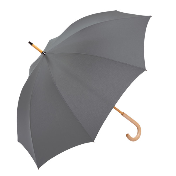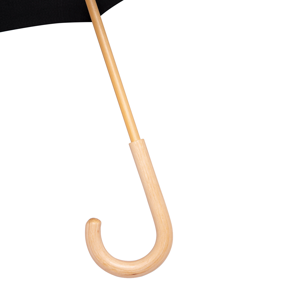 Dieser Regenschirm hat eine Bespannung aus 190T rPET Soft-Pongee und einen Durchmesser von ca. 105 cm. Mit einer geschlossenen Länge von ca. 88 cm lässt er sich dank der EASY OPEN Öffnungsmechanik schnell und einfach öffnen. Der Schirm verfügt über 8 stabile Segmente und 58,5 cm lange Fiberglasspeichen für zusätzliche Flexibilität. Der robuste 14 mm Holzschaft sorgt für Haltbarkeit, während der gebogene Holzgriff für eine angenehme Handhabung sorgt. Ausgestattet mit Metalltips und einer Holzspitze sowie einer Windproof-Funktion, ist der Schirm besonders widerstandsfähig gegen starken Wind.