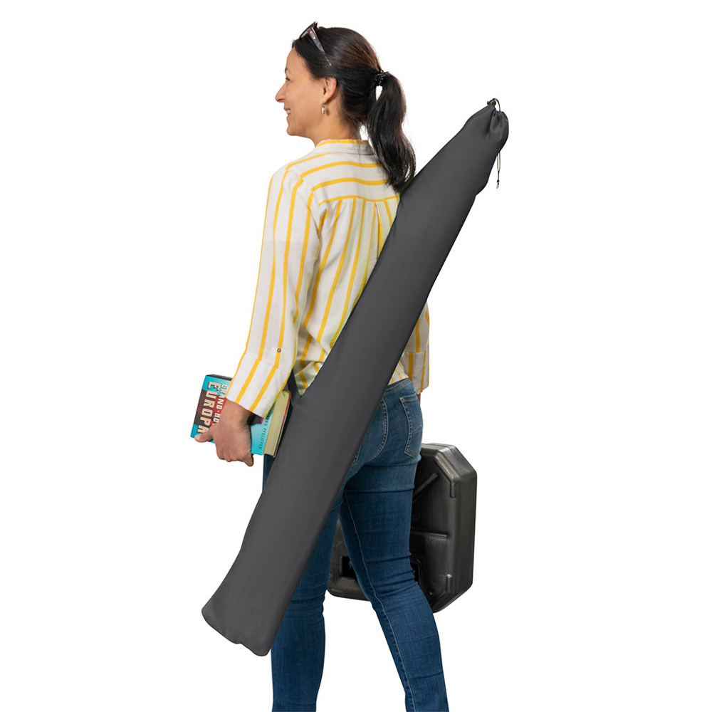 Einfache Handhabung durch Sicherheitsschieber, sehr stabile Fiberglasschienen, zweiteiliger und stufenlos höhenverstellbarer Stock mit Knickvorrichtung zur Neigung des Schirms, Stock in edlem Titan-Finish, Unterstock mit ca. 120 cm Länge und Drehfeststeller zur sicheren Fixierung, komfortables Tragefutteral, Bezug mit Lichtschutzfaktor UPF 50+, angeschnittenes Volant, exklusive Füllständer (Art. 8920 oder Art. 8905) / Erdspieß (Art. 8939)