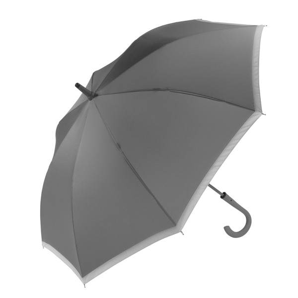 Der Schirm bietet eine hochwertige Bespannung aus 190T Pongee mit reflektierender Bordüre für zusätzliche Sichtbarkeit. Mit einem Durchmesser von ca. 102 cm bietet er optimalen Schutz vor Wind und Regen. Im geschlossenen Zustand misst der Schirm ca. 83 cm in der Länge. Die Automatikfunktion ermöglicht ein schnelles Öffnen. Der gummierte Rundgriff in passender Farbe zur Bespannung und die Metalltips mit gummierter Kunststoffspitze runden das moderne Design ab.