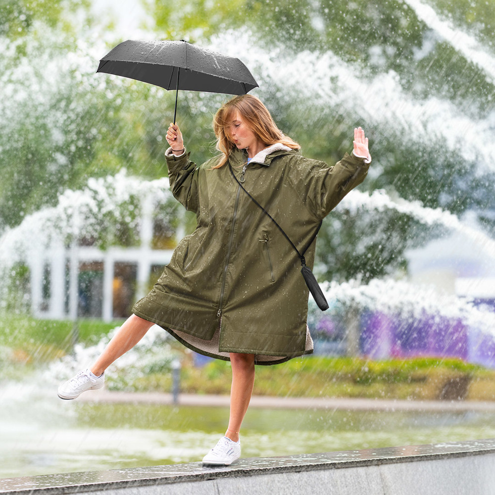 Superleichter Handöffner-Taschenschirm mit abnehmbarem Umhängeband und UV-Schutz Einfache Handhabung durch Sicherheitsschieber, hochwertiges Windproof-PLUS-System für eine maximale Gestell-Flexibilität bei stärkeren Windböen, schwarzer Aluminiumstock, extra leichtes Polyester-Pongee Bezugsmaterial aus recycelten Kunststoffen und mit Lichtschutzfaktor UPF 50+, Kunststoffgriff, Kappe und Lanyard-Klickverschluss aus recyceltem ABS (rABS), Griff mit Werbeanbringungsmöglichkeit, Befestigung des Umhängebandes per Klickverschluss am Futteral oder am Schirm möglich, einfaches Zusammenrollen des Schirms durch breites Schließband