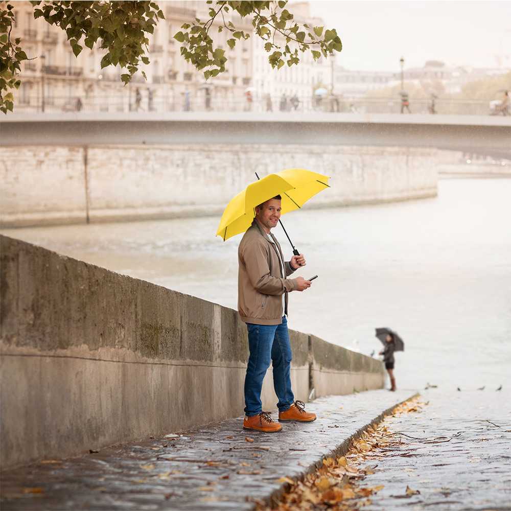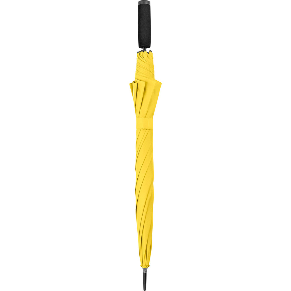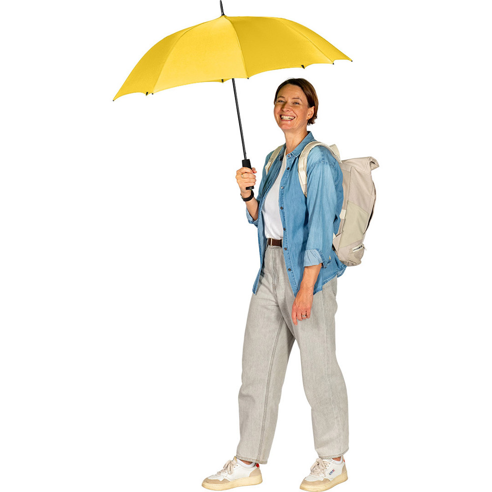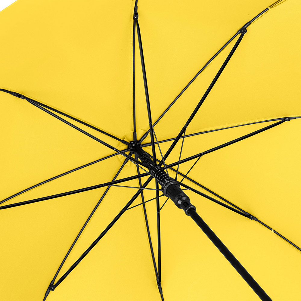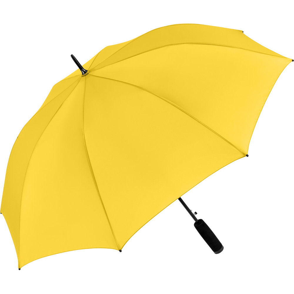 Automatik-Stockschirm mit hervorragendem Preis-Leistungs-Verhältnis und Windproof-System Komfortable Automatik-Funktion zum schnellen Öffnen, hochwertiges Windproof-System für höhere Gestell-Flexibilität und bessere Windsicherheit, flexible Fiberglasschienen, höherer Korrosionsschutz durch schwarze Galvanisierung des Stahlstocks, handsympathischer Soft-Griff mit Werbeanbringungsmöglichkeit
