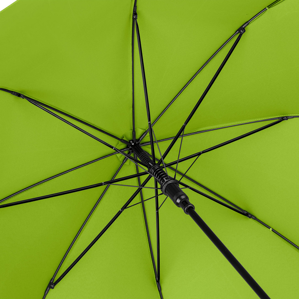 Automatik-Stockschirm mit hervorragendem Preis-Leistungs-Verhältnis und Windproof-System Komfortable Automatik-Funktion zum schnellen Öffnen, hochwertiges Windproof-System für höhere Gestell-Flexibilität und bessere Windsicherheit, flexible Fiberglasschienen, höherer Korrosionsschutz durch schwarze Galvanisierung des Stahlstocks, handsympathischer Soft-Griff mit Werbeanbringungsmöglichkeit