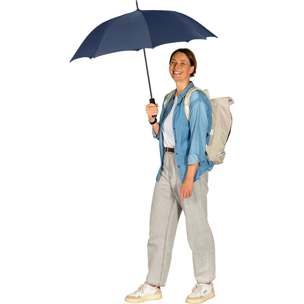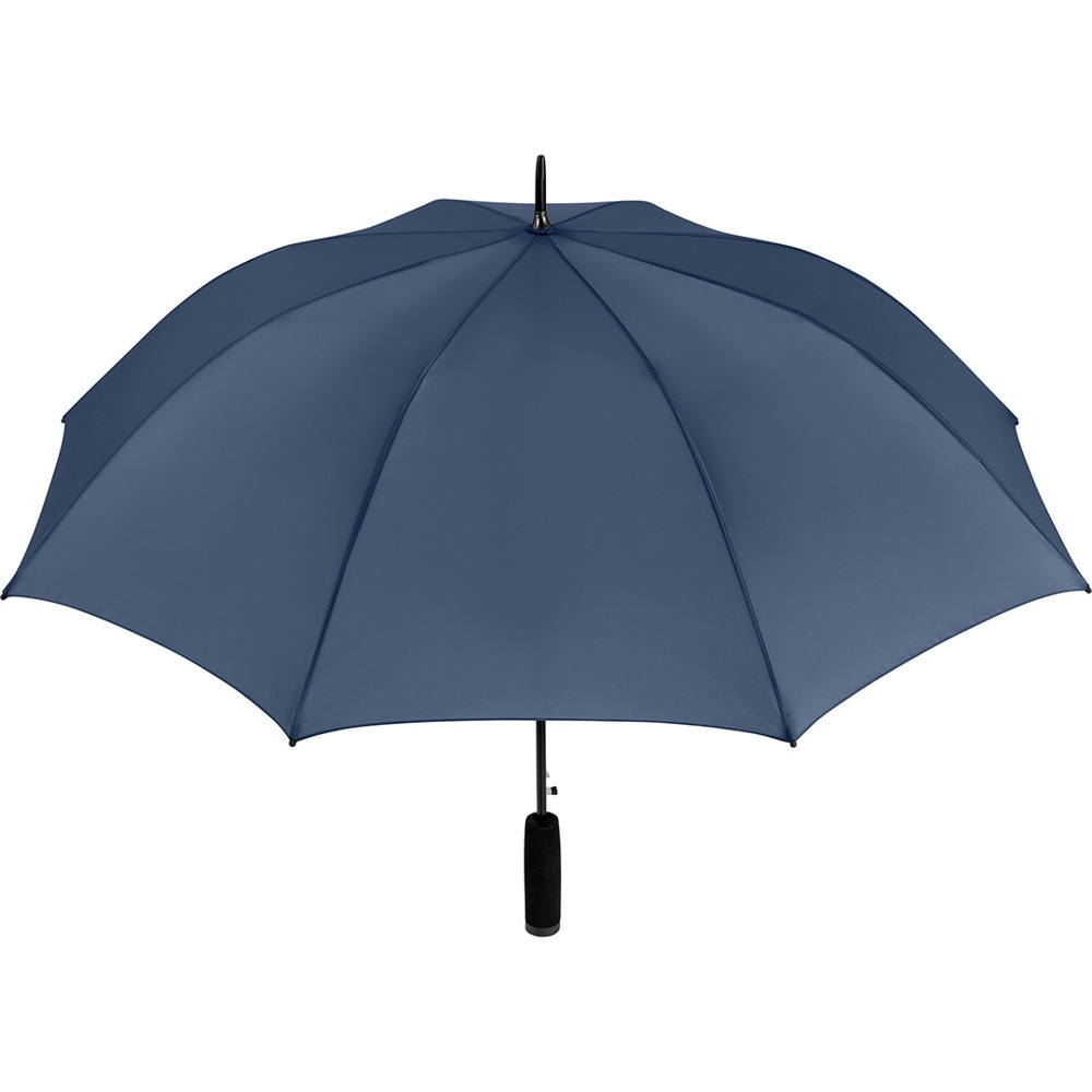 Automatik-Stockschirm mit hervorragendem Preis-Leistungs-Verhältnis und Windproof-System Komfortable Automatik-Funktion zum schnellen Öffnen, hochwertiges Windproof-System für höhere Gestell-Flexibilität und bessere Windsicherheit, flexible Fiberglasschienen, höherer Korrosionsschutz durch schwarze Galvanisierung des Stahlstocks, handsympathischer Soft-Griff mit Werbeanbringungsmöglichkeit