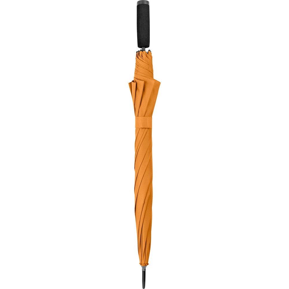 Automatik-Stockschirm mit hervorragendem Preis-Leistungs-Verhältnis und Windproof-System Komfortable Automatik-Funktion zum schnellen Öffnen, hochwertiges Windproof-System für höhere Gestell-Flexibilität und bessere Windsicherheit, flexible Fiberglasschienen, höherer Korrosionsschutz durch schwarze Galvanisierung des Stahlstocks, handsympathischer Soft-Griff mit Werbeanbringungsmöglichkeit