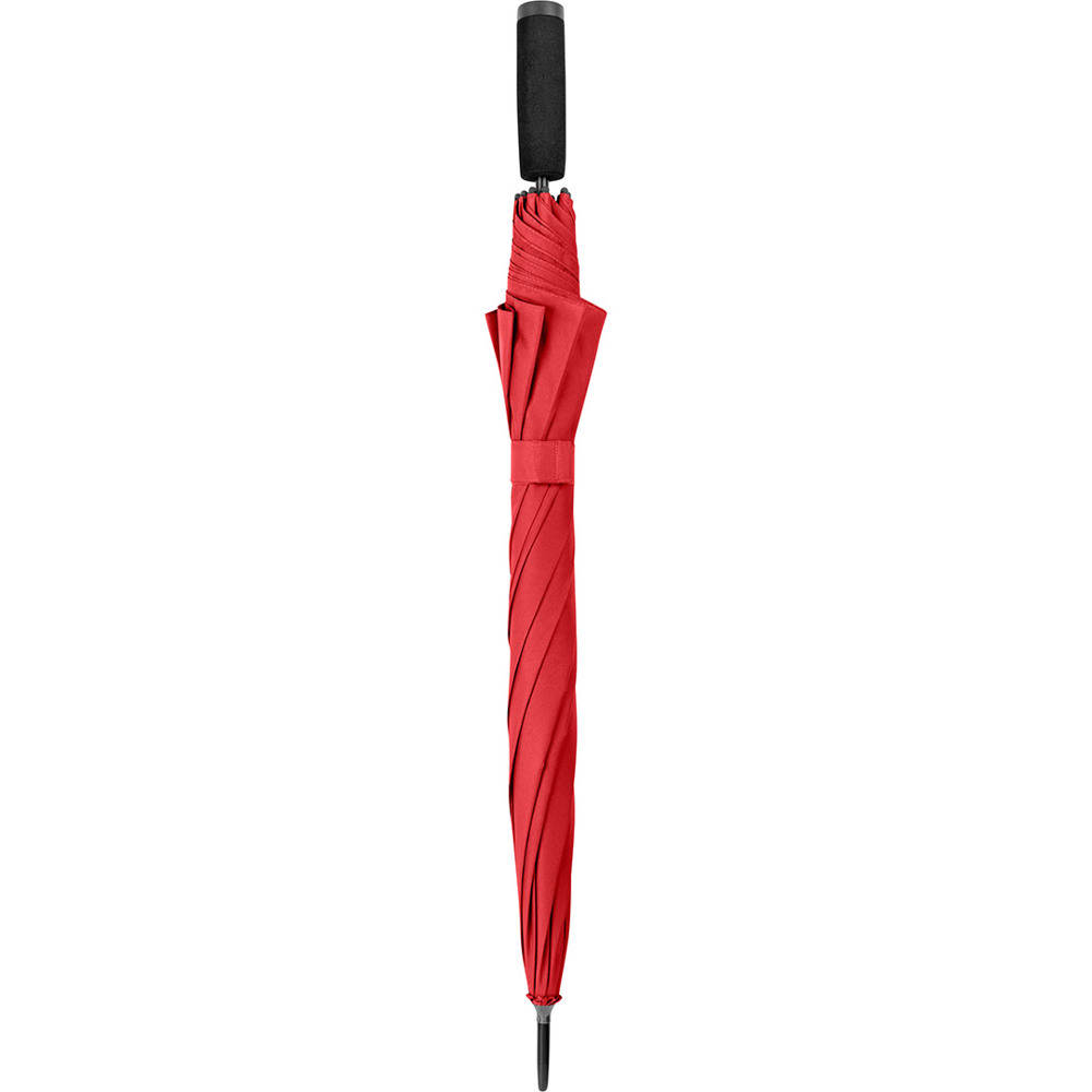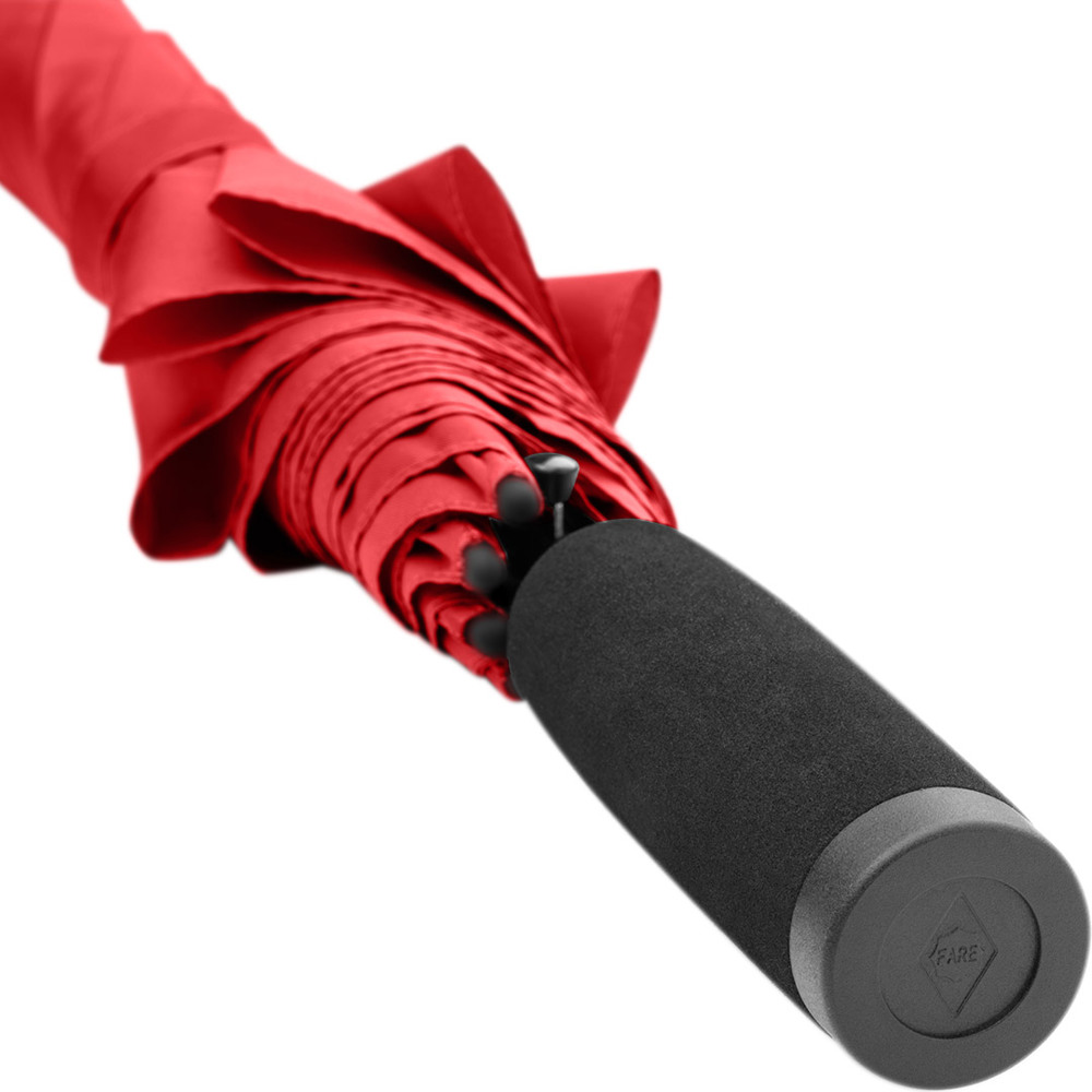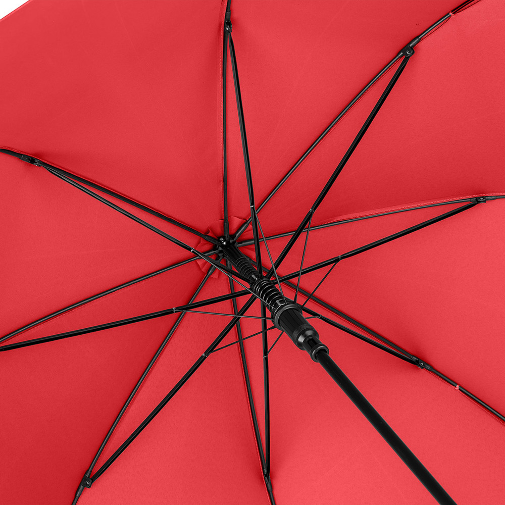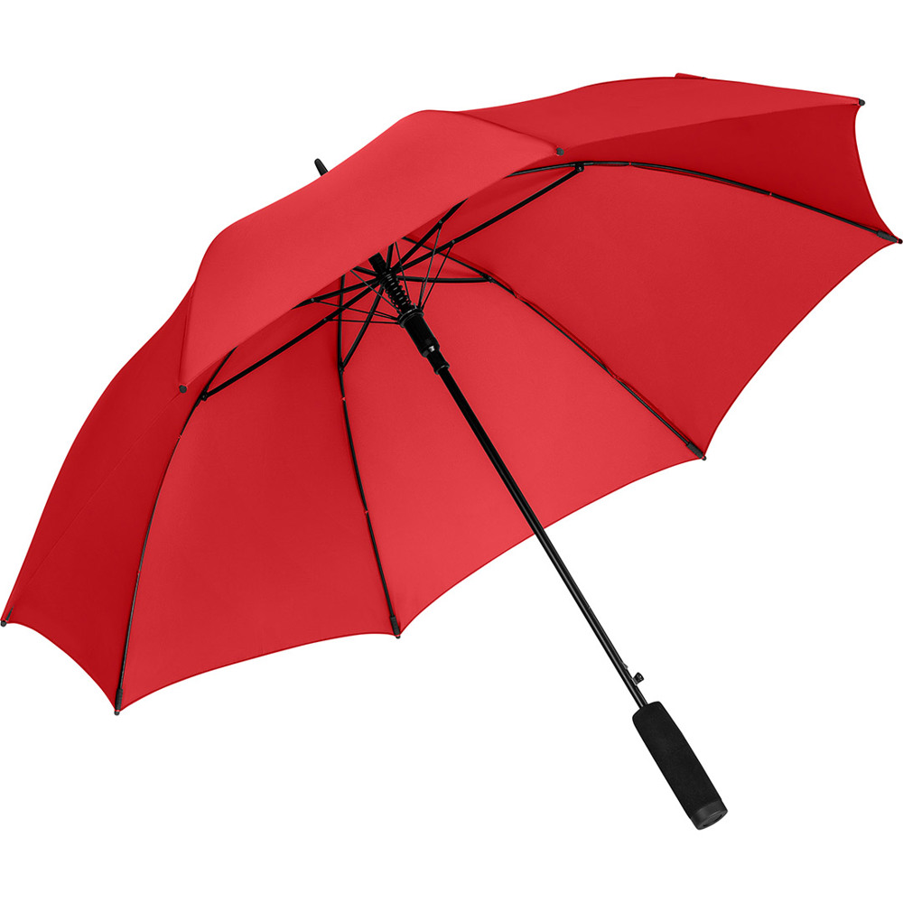 Automatik-Stockschirm mit hervorragendem Preis-Leistungs-Verhältnis und Windproof-System Komfortable Automatik-Funktion zum schnellen Öffnen, hochwertiges Windproof-System für höhere Gestell-Flexibilität und bessere Windsicherheit, flexible Fiberglasschienen, höherer Korrosionsschutz durch schwarze Galvanisierung des Stahlstocks, handsympathischer Soft-Griff mit Werbeanbringungsmöglichkeit