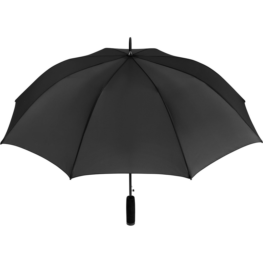 Automatik-Stockschirm mit hervorragendem Preis-Leistungs-Verhältnis und Windproof-System Komfortable Automatik-Funktion zum schnellen Öffnen, hochwertiges Windproof-System für höhere Gestell-Flexibilität und bessere Windsicherheit, flexible Fiberglasschienen, höherer Korrosionsschutz durch schwarze Galvanisierung des Stahlstocks, handsympathischer Soft-Griff mit Werbeanbringungsmöglichkeit