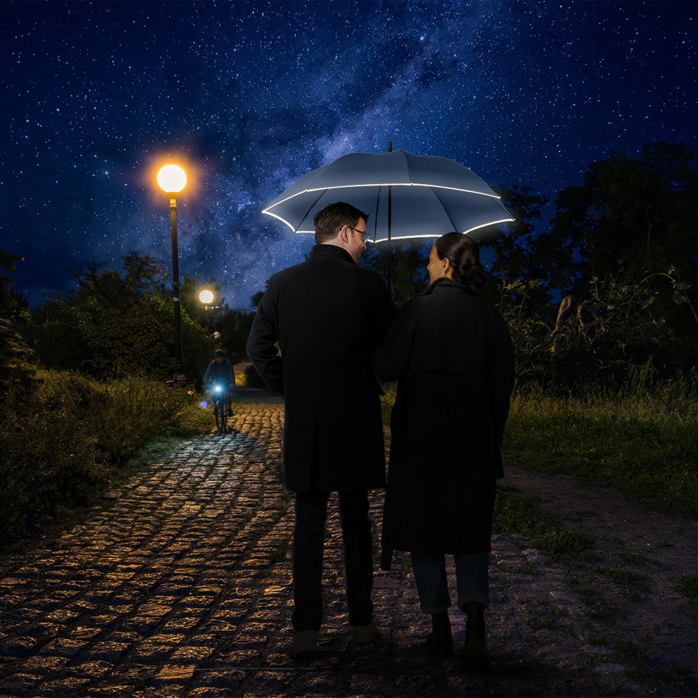 Smarter Stockschirm in mittlerer Größe mit modisch reflektierender Paspelierung Komfortable... mehr
