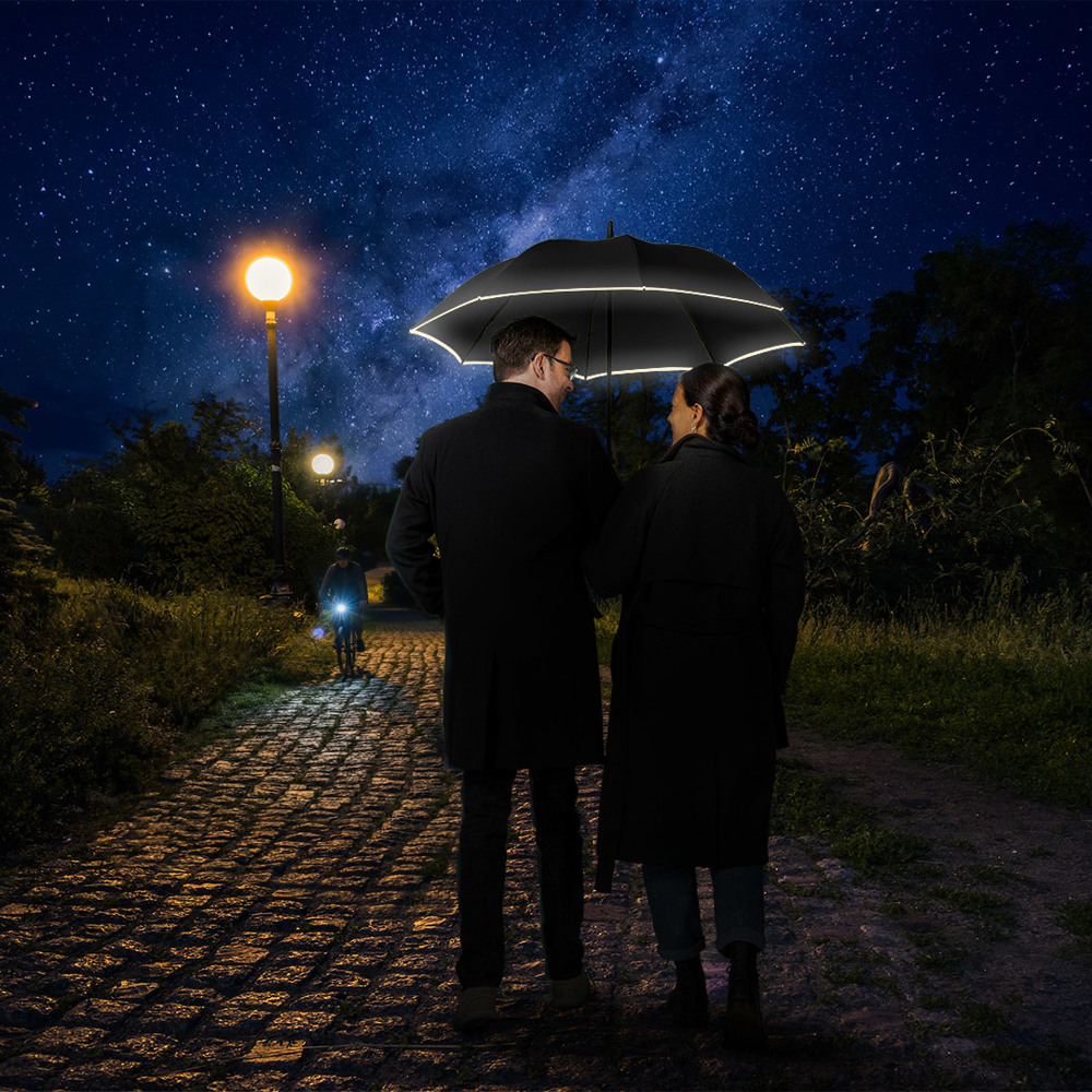 Smarter Stockschirm in mittlerer Größe mit modisch reflektierender Paspelierung Komfortable... mehr