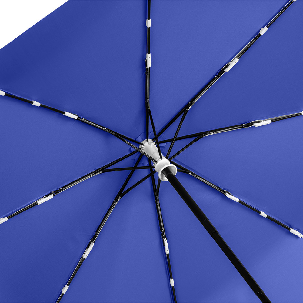 Stylischer Doppelautomatik-Taschenschirm mit weißen Design-Elementen Komfortable Doppelautomatik-Funktion zum schnellen Öffnen und Schließen, hochwertiges Windproof-PLUS-System für eine maximale Gestell-Flexibilität bei stärkeren Windböen, flexible Fiberglasschienen mit weißen Design-Elementen, stabiler Stahlstock, Polyester-Pongee Bezugsmaterial aus recycelten Kunststoffen, formschöner Soft-Feel-Griff mit Trageschlaufe in Bezugsfarbe und weißen Design-Elementen mit integrierter Auslösetaste und Werbeanbringungsmöglichkeit