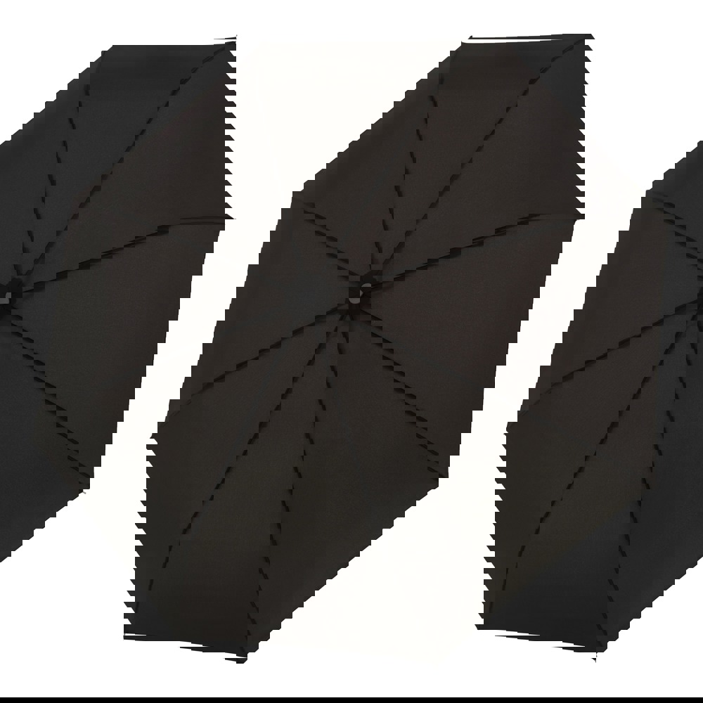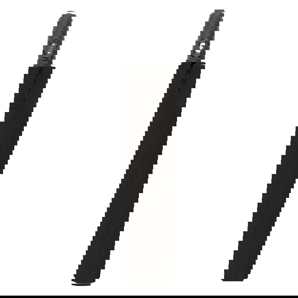 Material: Polyester Pongee, schwarzer Stahlstock, Fiberglas-Teilschienen, mattschwarzer Kunststoffgriff mit integrierter Drucktaste