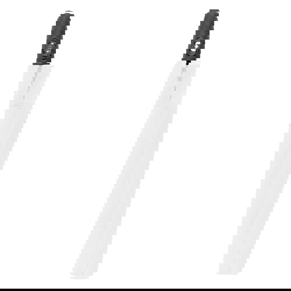 Material: Polyester Pongee, schwarzer Stahlstock, Fiberglas-Teilschienen, mattschwarzer Kunststoffgriff mit integrierter Drucktaste