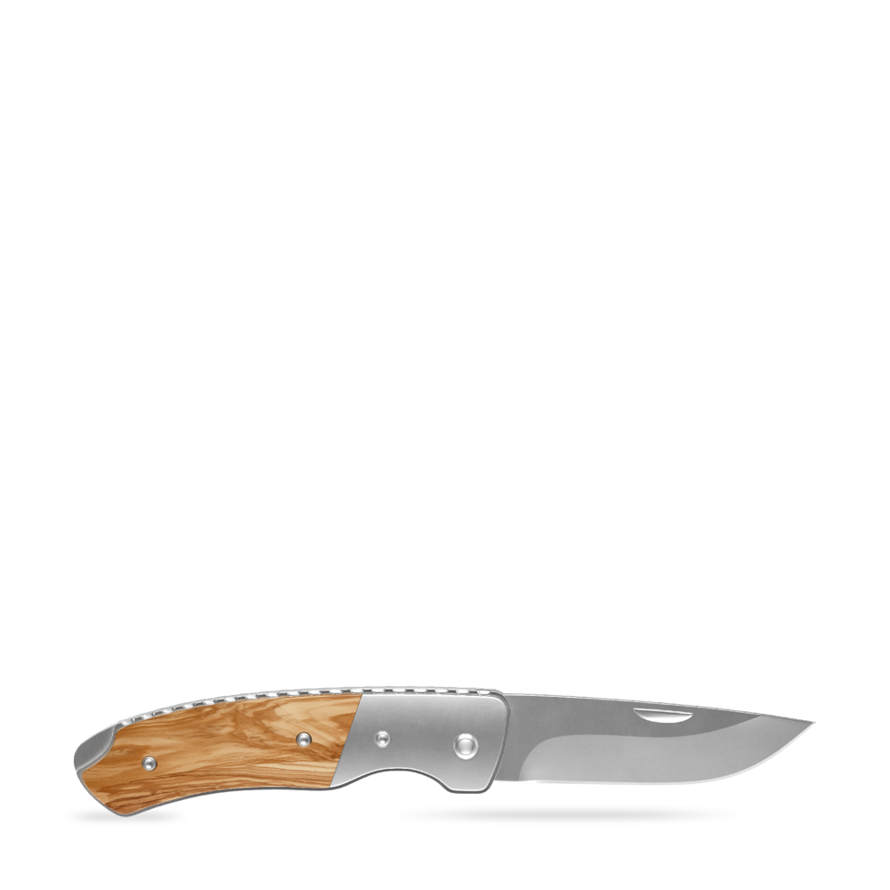 Durch seine natürlichen Olivenholzgriffe und die hochwertige Klinge wird das ATaschenmesser gerne genutzt, was langanhaltenden Werbeerfolg garantiert.
