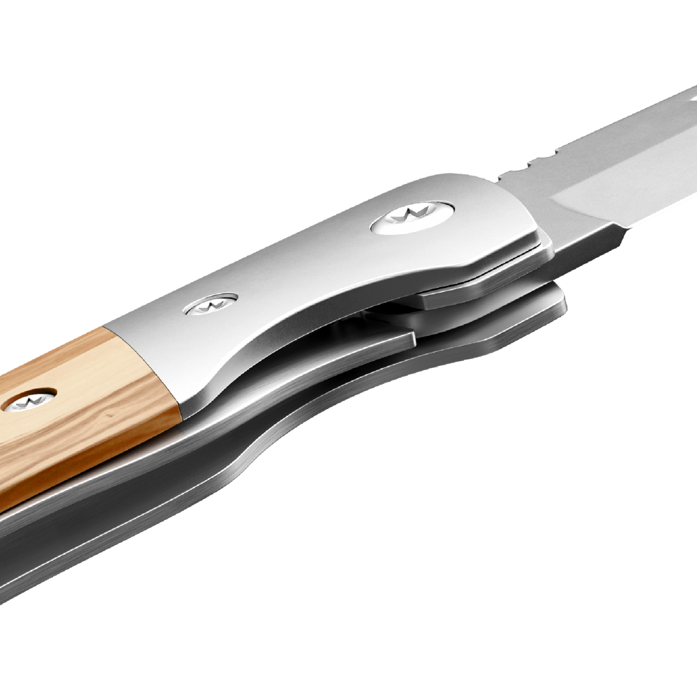 Durch seine natürlichen Olivenholzgriffe und die Besteck-Funktion ist das Picknickmesser der perfekte Outdoor Begleiter und wird gerne genutzt, was langanhaltenden Werbeerfolg garantiert.