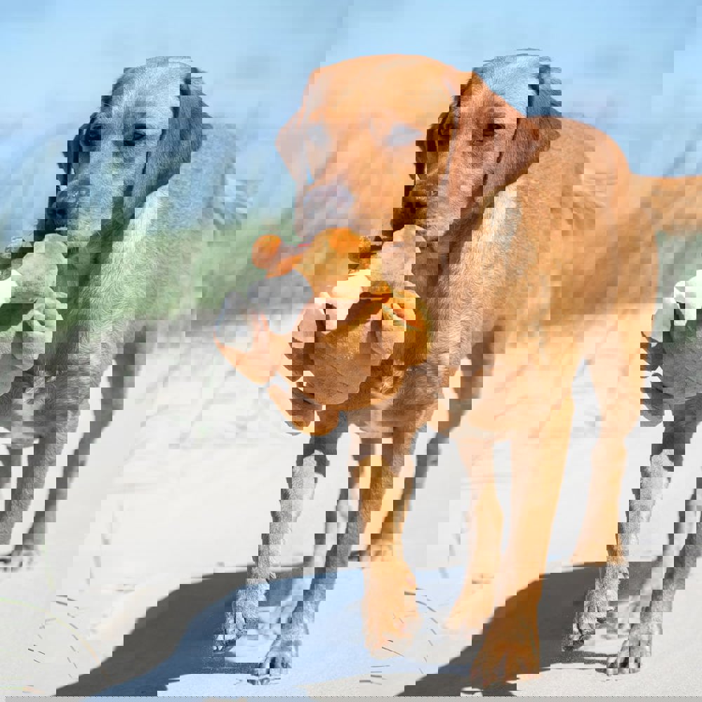 Der Traum eines jeden Hundes wird wahr, wenn ihm die gebratenen Hähnchen zufliegen. Ein humorvolles Hundespielzeug, welches dank geprüfter Qualität einiges aushält. Ob zum Raufen, Kuscheln oder Apportieren – Hundespielzeug Hähnchen macht alles mit und sorgt bei Herrchen und Frauchen sicherlich für die ein oder andere Lachträne.