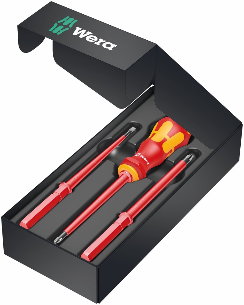 Isolierte Klingen für sicheres Arbeiten bis 1.000 Volt. VDE Wechselklingen 154mm lang. Mehrkomponentiger VDE-isolierter Kraftform Handhalter mit Abrollschutz. Ergonomischer Kraftform Griff für ermüdungsarmes Arbeiten