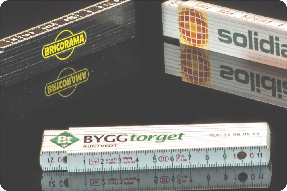 Günstiger Kunststoff-Gliedermaßstab mit hohem Glasfaseranteil in guter Qualität.Weiße Glieder mit schwarz-rot geprägter Skalierung, schwarze Glieder mit weißer Skala. Innenliegendes Gelenk mit rostfreier Metallvernietung und 90° Einrastung aller Glieder. Vollflächiger Digitaldruck auf den Hochseiten möglich.