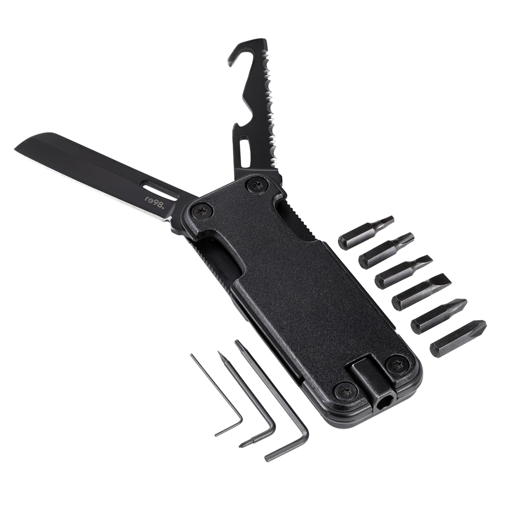 Ob beim Camping, im Büro oder unterwegs: Das RE98-PINNO ist immer zur Stelle, wenn Präzision und Vielseitigkeit gefragt sind. Dieses kompakte Multifunktionswerkzeug vereint zahlreiche Tools in einem robusten, eleganten All-Black-Gehäuse und überzeugt mit seiner durchdachten Ausstattung. Maximale Funktion auf kleinstem Raum.