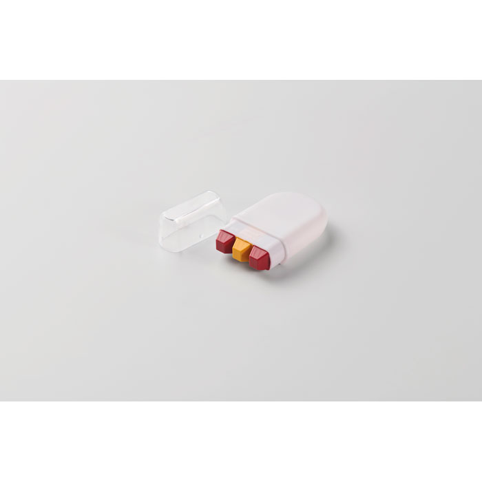Fan Schminkstift in verschiedenen Flaggen-Farben. Wachsfarbe in PP-Gehäuse mit PS-Deckel.