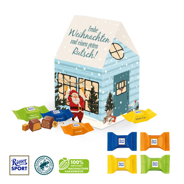 Adventskalender Haus mit Ritter SPORT Schokowürfel