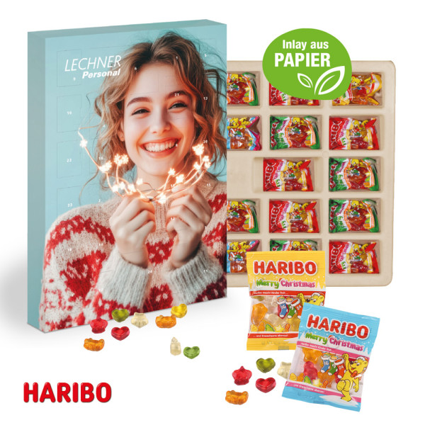 Adventskalender mit Haribo Fruchtgrummi, Inlay aus Papier